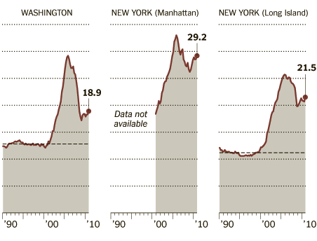 La primera es una razón de renta: Precio promedio de la casa / renta anual