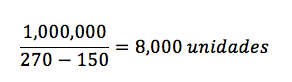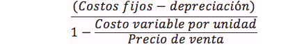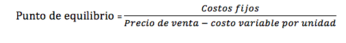 La fórmula para obtener el punto de equilibrio en unidades de venta es: