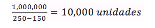 Veamos un ejemplo: Supongamos que la empresa CAPM vende productos a 250 pesos cada uno. Tiene costos fijos de $100,000 y un costo variable por unidad de $150.