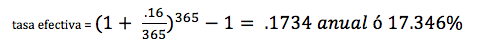 - Banco A, donde tu dinero y el interés se reinvierten diariamente a una tasa de 16% anual