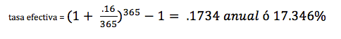 El banco A te da el 16% con capitalización diaria o en el banco B, que te da el 17% capitalizable cada 28 días?