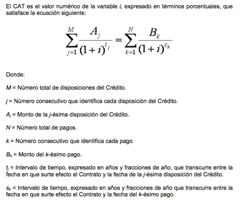 Verifica tu recibo y/o tu contrato. Incuso en la propaganda debe de incluirse por ley. Si quieres saber cómo calcular el CAT, te incluyo aquí la fórmula.