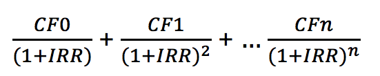 Las cantidades que invertimos se consideran flujos negativos (outflows) y lo recibido o retirado es flujo positivo (inflow). Esta es la fórmula:
