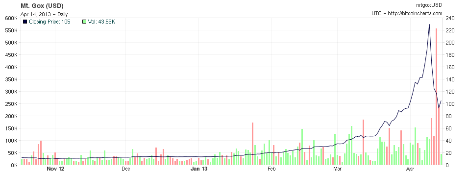 El valor del Bitcoin se ha disparado a raíz del escándalo en Chipre. en donde el temor de la gente los llevó a refugiarse en esta alternativa, además de la atención que le han brindado los medios. En enero un Bitcoin valía unos 15 dólares americanos colocándose al cierre del 12 de abril en 105 dólares.