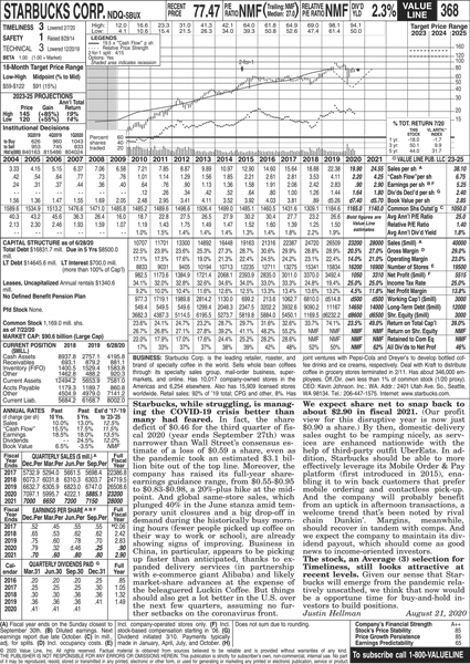 3. El siguiente paso es analizar los números de la empresa para determinar si hay algo interesante. Vamos a tomar un ejemplo de una hoja de ValueLine, que se ve como aquí abajo (esta fue obtenida de esta página, con permiso de VL para su reproducción). Li Lu mencionó que se toma unos segundos para analizar las tendencias más relevantes. Dio el ejemplo de Timberland, cotizando cerca de book value limpio, consistiendo mayormente de activos tangibles líquidos, capital de trabajo y cerca de unos US$100mn en bienes raíces. El capital usado por el negocio era de ~US$200mn con un rendimiento de US$100mn. Con ese rendimiento, Lu determinó que el negocio era bueno, junto con el reconocimiento de la marca.