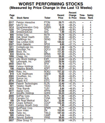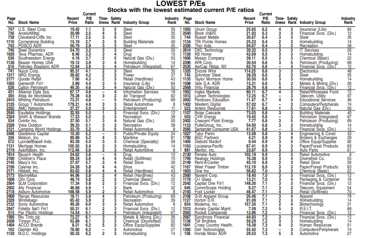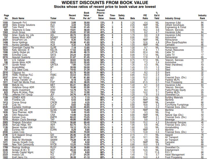 - Pescar donde están los peces: Li Lu platicó que la parte que más disfruta y donde comienza a leer en ValueLine (VL) es la sección de New Lows, que se ve así: