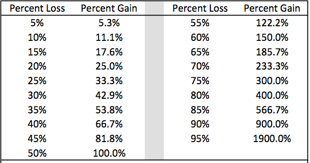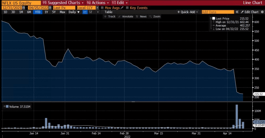 Algo que es muy importante recordar es que en el mundo de las inversiones, el rendimiento requerido para reponer una pérdida no es simétrico. En el caso de NFLX, recuperarse de una caída de 64% requiere una ganancia de +178%.